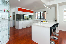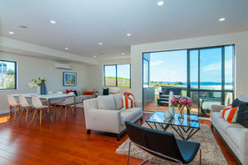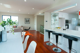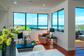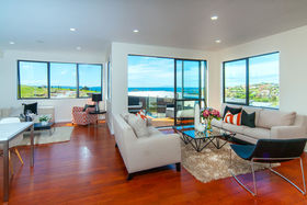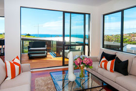 Expansive open plan dining, kitchen family room with effortless flow to outdoor entertaining deck area with sea views.