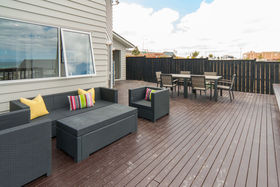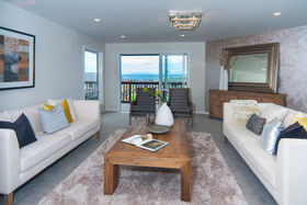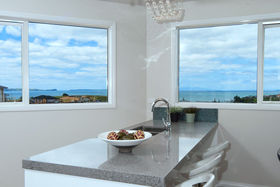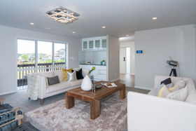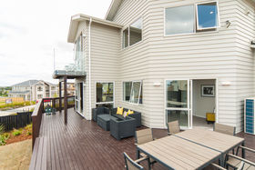 Must be one of the best brand new homes with panoramic sea views. It is a beautiful 4 bedroom 3 bathroom weatherboard home with some feature stone schist. On entry level is a large formal lounge with double ranch slider access to a huge wrap around deck in an elevated position and taking in some great views. A further 2 bedrooms, one with direct access to another part of the deck plus bathroom comprise this level with the garage/ laundry. Upstairs opens up to absolutely gorgeous sea views from anywhere in the living areas, from your designer kitchen, dining room to family room and deck. See from Sky Tower, Rangitoto Island to Whangaparaoa peninsula. A master bedroom ensuite plus 4th bedroom and bathroom completes this level, making this a very comfortable, family home with options.