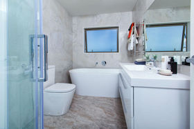 Room sizes are very generous and sunny with a huge master bedroom ensuite with private deck overlooking garden street. Take in the great sea views from bedrooms as well as spacious upstairs rumpus/lounge.