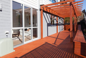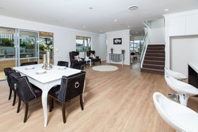 On entry level there is in addition to the formal lounge, open plan family, dining & kitchen, a comfortable double bedroom and bathroom. Effortless flow from living areas to an expansive North and East facing deck with a walk way providing greater distance to your neighbour on this side. Great for relaxation /entertaining!