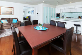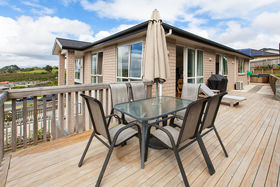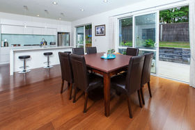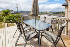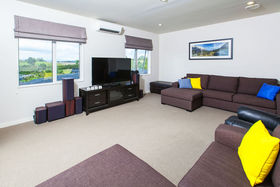 The formal lounge has full length windows providing lovely expansive views across Albany. As this home is one of the highest in this subdivision its great elevation makes for grand views not only from the lounge but also the kitchen/dining/family rooms and all the decks. The gourmet designer kitchen has huge pantry space, special glass splash back, breakfast nook and is the hub of the home that is well integrated into the dining and family room, providing effortless flow to the outside deck on ground level.