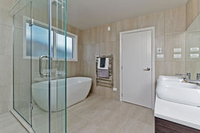 • Upstairs, cross the catwalk to the master suite and private kwila deck with views of the estuary. Ensuite has a bath and twin showers & sinks