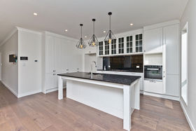 • Black and white kitchen with Miele appliances, granite benchtop, feature lights and oodles of storage