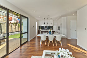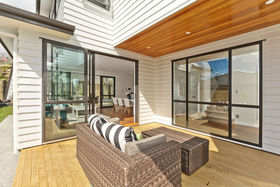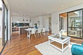 There is a total of 5 bedrooms, 4 lounge spaces and 4.5 bathrooms. Bathrooms all have beautiful polished tiles, the hard flooring is rich wood laminate, and the garage is carpeted with an insulated door and two storage cupboards. Built of weatherboard and fully landscaped. There is more to see here on this 503m2 property, discover it for yourself..