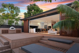 The main home features 4 large sliding glass doors that retract right back to reveal a designer kitchen with open plan dining and large family living area that flow seamlessly to the outdoors. There are 5 bedrooms in total, master with large walk-in robe, ensuite and access to a private back deck that also includes a spa pool. The triple car garage has enough space to store all of the toys and houses the distinctive cedar battened pod on the second story which includes the fifth bedroom, toilet and storage area.