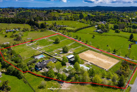 This is the perfect family home with endless storage, all on one level apart from a separate office/rumpus room currently utilised as a guest studio and office. Magnificent liquid amber trees line the driveway and the land is all post and railed with beautiful big trees dotted throughout the property. A special dog run, implement shed, further garaging over and above the house along with a brilliant Harrison Lane stable complex beside the arena. There are four stables, a powder room, separate kitchenette with a dishwasher and fridge along with a tack room and tie-ups...it doesn't get better than this for your equestrian needs.