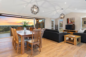 The home features 3 separate living areas, 4 large bedrooms and 3 bathrooms. A dedicated children's wing that encompasses 2 bedrooms, bathroom and living area. A formal living area featuring a gas fireplace with enormous windows to capture the impressive views. The master suite has its own private office, walk in wardrobe and generous ensuite. Downstairs, there is a large bedroom with separate bathroom and enormous living room - a brilliant layout for a separate unit, extended family or guest accommodation.