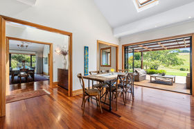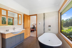 Five large light filled bedrooms, four bathrooms, study and a separate and extremely spacious loft area offering additional accommodation or entertaining options with towering ceilings and large decking. All bedrooms have external doors and flow to the outdoors and capture the stunning vistas of the surrounding landscape.