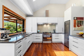 Massive open plan living forms the core of the home incorporating the sensational kitchen, dining and family areas, free flowing with high stud and a welcoming ambiance. Substantial separate dining and formal lounge complement the open plan areas, which all provide a seamless indoor/outdoor flow to fabulous outdoor entertaining, decking and flat lawns.